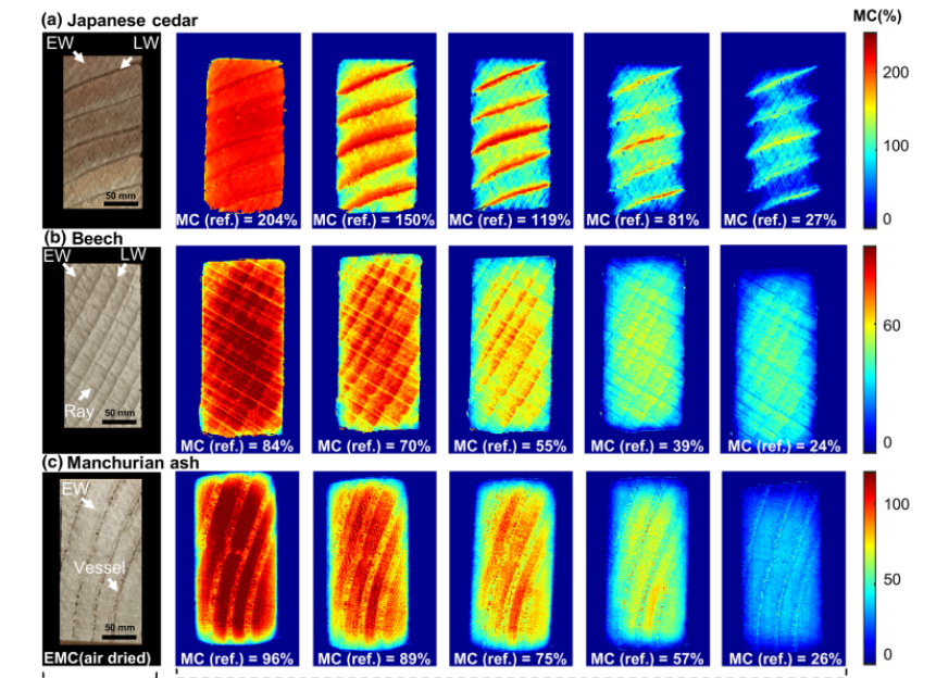 实验材料:使用多块具有不同含水率的木材样品作为实验材料,这些木块经过循环干燥处理,以获得不同的含水率状态。